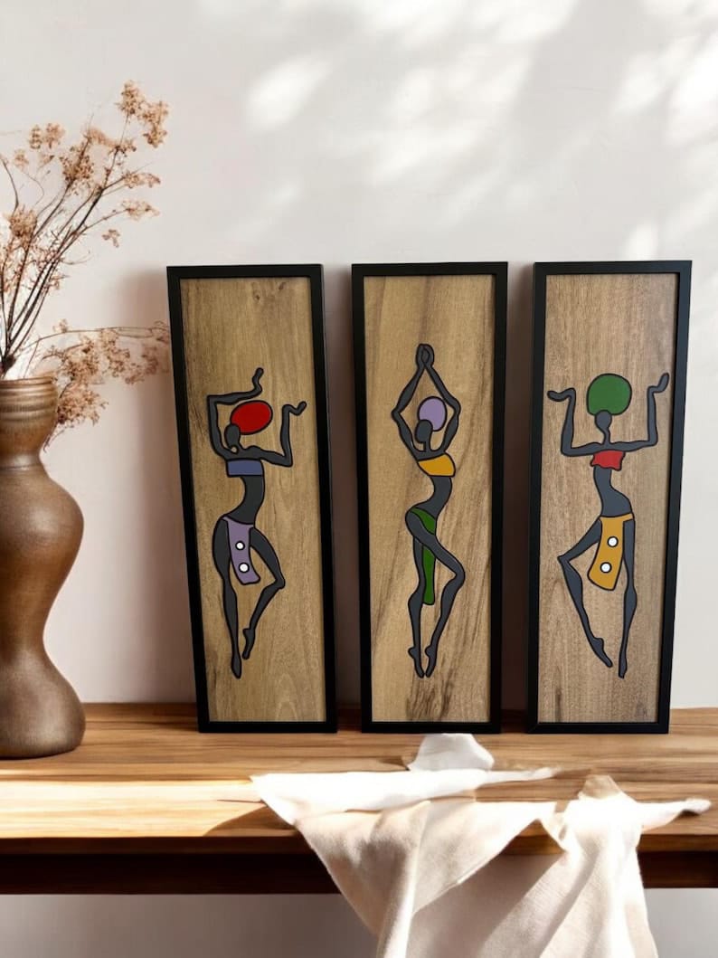 Femmes africaines, Art mural 3D, Décoration murale en bois