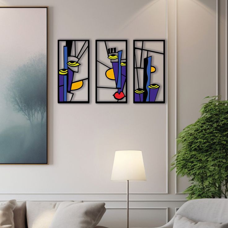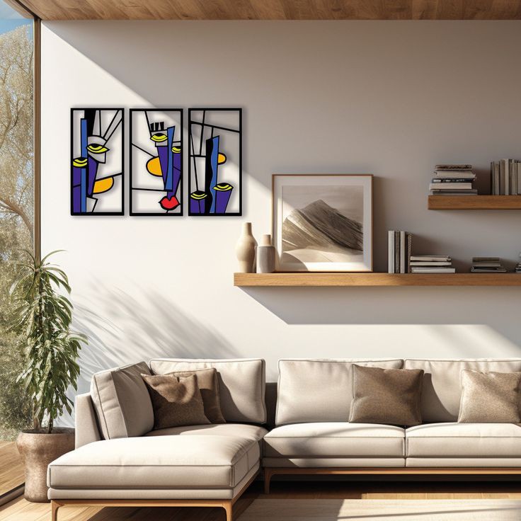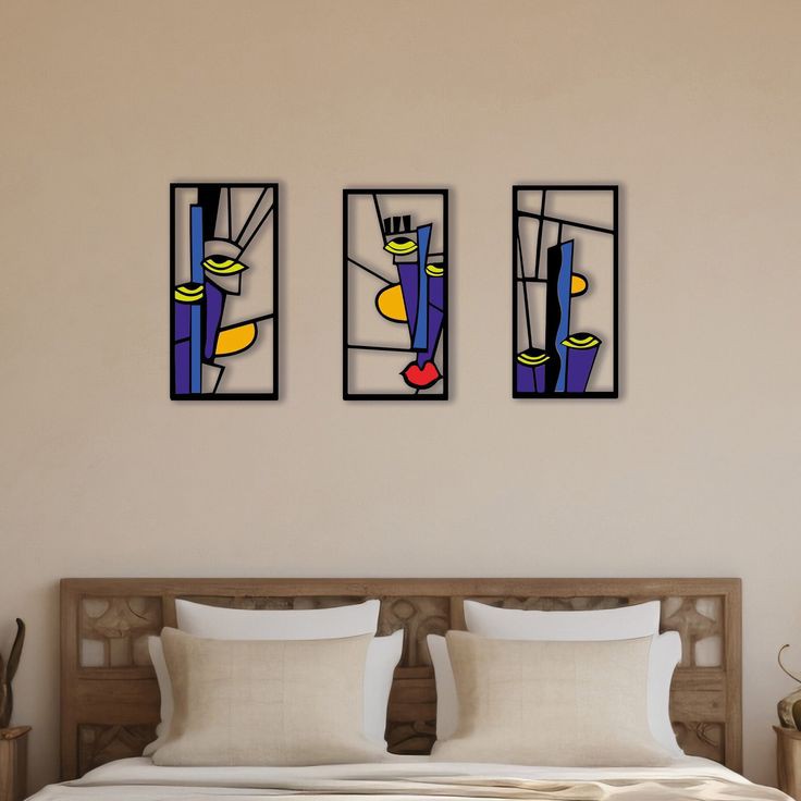 فن جداري خشبي مجرد مخصص بثلاث وجوه نسائية، على طراز بيكاسو، ديكور جداري مكعب، فن جداري دادائي، فن جداري للمنزل، فوق السرير.