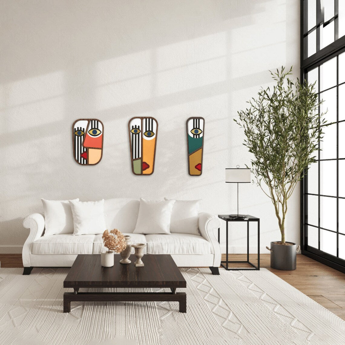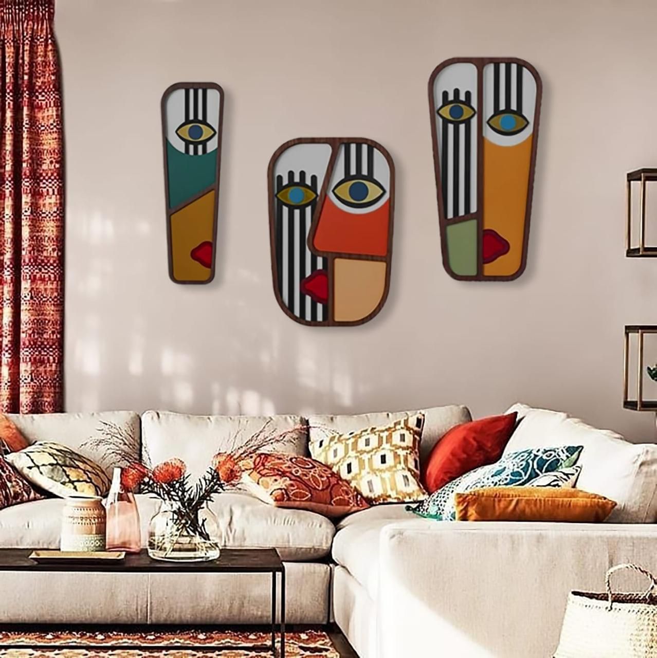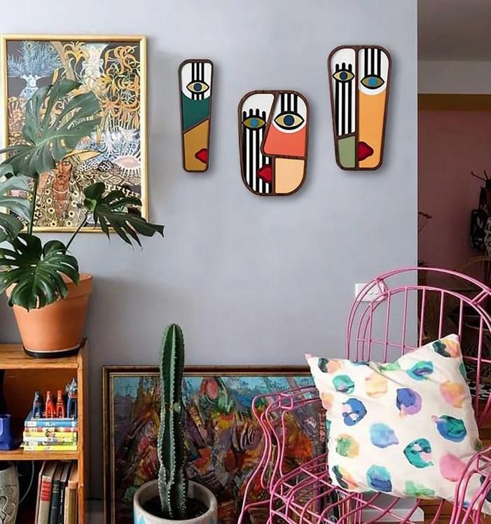 Décoration murale moderne de masques abstraits 3D pour ajouter une touche unique à votre espace.
