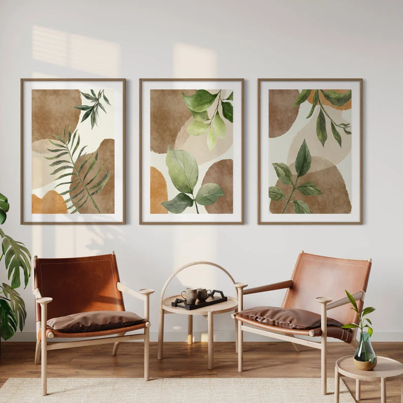 مجموعة من 3 لوحات | فن حائطي بألوان الأرض