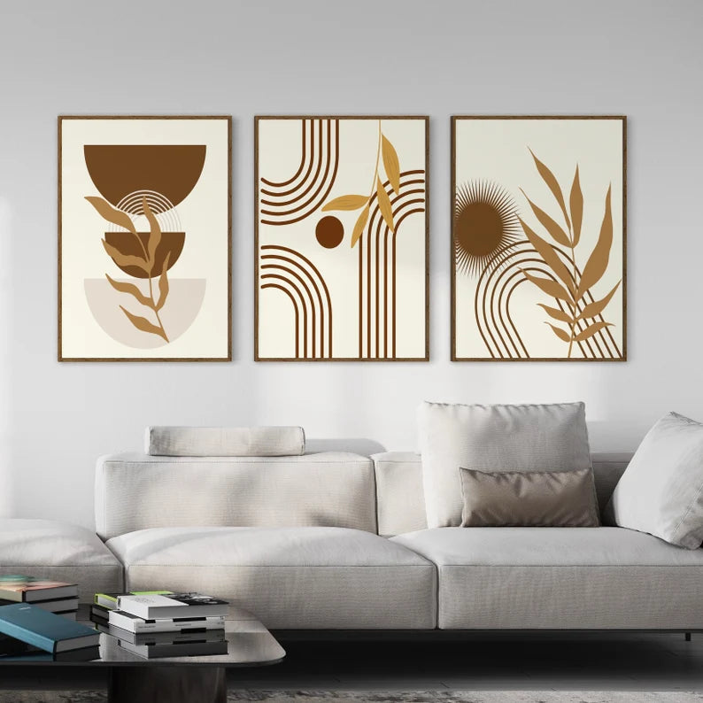 Ensemble de 3 Tableaux Murales Bohème, Art Bohème Arc-en-ciel, Feuilles Abstraites Bohème, Art Moderne du Milieu du Siècle