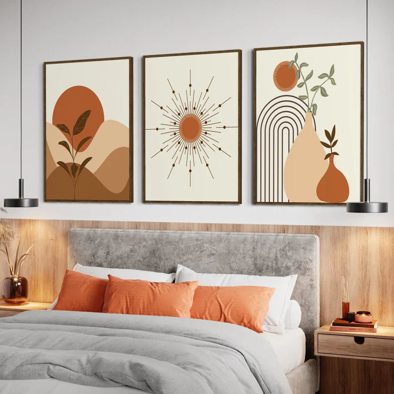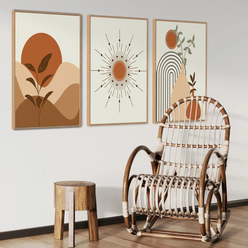 Style unique de décoration murale pour votre salon, cuisine, salle de bain, salle à manger, bureau, buanderie ou dortoir ! Ensemble de 3 tableaux muraux, affiches Boho et décor mural moderne. Idéal pour votre maison, ces décorations murales modernes en Arc-en-ciel ajoutent une touche élégante à tout espace.