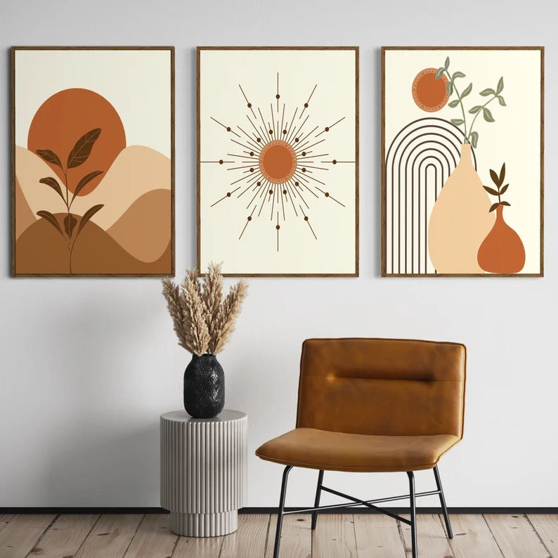 Ensemble de 3 Tableaux Murales Bohèmes, Art Bohème Arc-en-ciel, Feuilles Abstraites Bohèmes, Art Moderne du Milieu du Siècle, Paysage Bohème